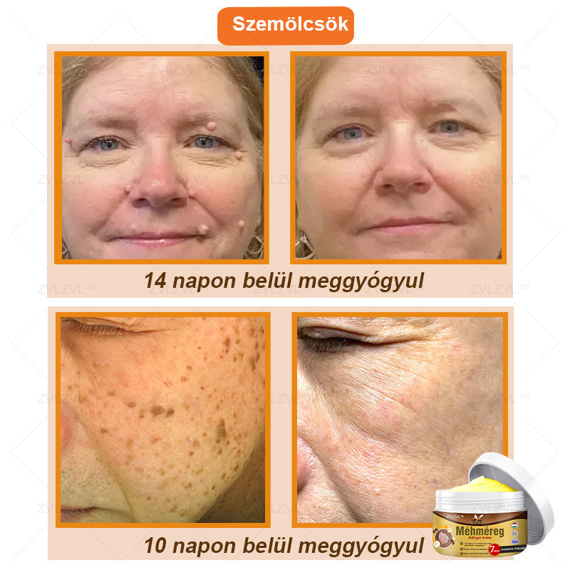 "Ahogy öregedtem, egyre több bĆrcĂ©dulĂĄt vettem Ă©szre az arcomon. Tudom, hogy ĂĄrtalmatlanok, de nagyon zavarnak Ă©s befolyĂĄsoljĂĄk a megjelenĂ©semet.Ăgy döntöttem, hogy kiprĂłbĂĄlom ezt a mĂ©hmĂ©regkrĂ©met, miutĂĄn a klinikĂĄn kiszĂșrtam, Ă©s az eredmĂ©nyek hihetetlenek voltak. Alig kĂ©t napon belĂŒl nĂ©hĂĄny bĆrcĂ©dula elkezdett vilĂĄgosodni, Ă©s vĂ©gĂŒl sok közĂŒlĂŒk teljesen leesett. Az arcom most sokkal tisztĂĄbbnak tƱnik, Ă©s ĆszintĂ©n Ășgy Ă©rzem, mintha 10 Ă©vet visszaforgattam volna az idĆ kerekĂ©t. Annyira örĂŒlök, hogy kiprĂłbĂĄltam!" - JĂĄnos SzabĂł, GyĆr, HU