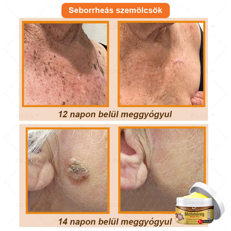 "Nagyon sok seborrheĂĄs szemölcs volt az arcomon, Ă©s tudtam, hogy a folyĂ©kony nitrogĂ©nes kezelĂ©s egy lehetĆsĂ©g, de ez nagyon drĂĄga, Ă©s azt hallottam, hogy hegeket hagyhat. EzĂ©rt Ășgy döntöttem, hogy kiprĂłbĂĄlom ezt a krĂ©met, mert hallottam, hogy a mĂ©hmĂ©reg nagyszerƱ a bĆrpettyekre.  Ăs ez igaz - a seborrheĂĄs szemölcsök jelentĆsen csökkentek! Alig több mint egy hĂ©t elteltĂ©vel kezdtek vilĂĄgosabb szĂnƱvĂ© vĂĄlni, Ă©s fokozatosan elhalvĂĄnyodtak.Soha nem gondoltam volna, hogy otthon is bĆrgyĂłgyĂĄsz szintƱ eredmĂ©nyeket Ă©rhetek el. Ez a krĂ©m annyi idĆt Ă©s pĂ©nzt takarĂtott meg nekem!" - PĂ©ter KovĂĄcs, Miskolc, HU